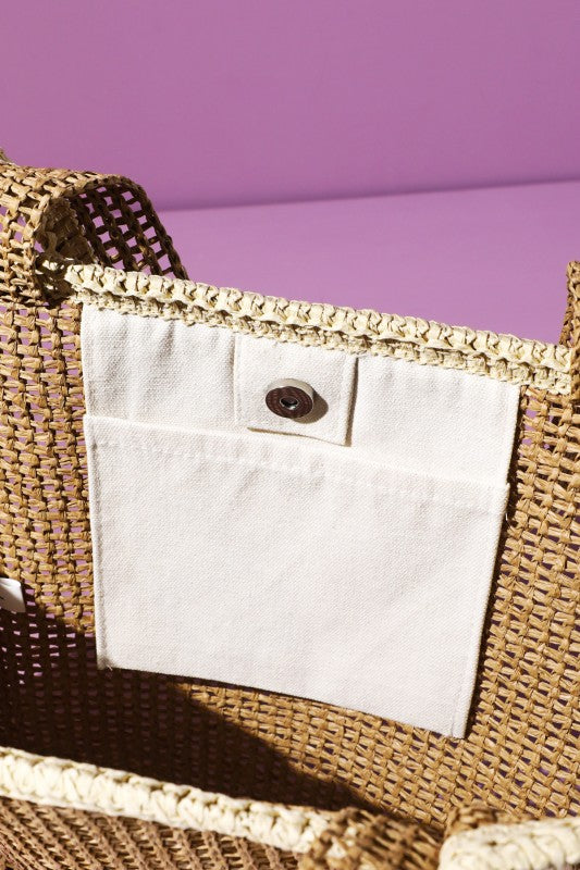 Black Trim Raffia Slip on Sandals