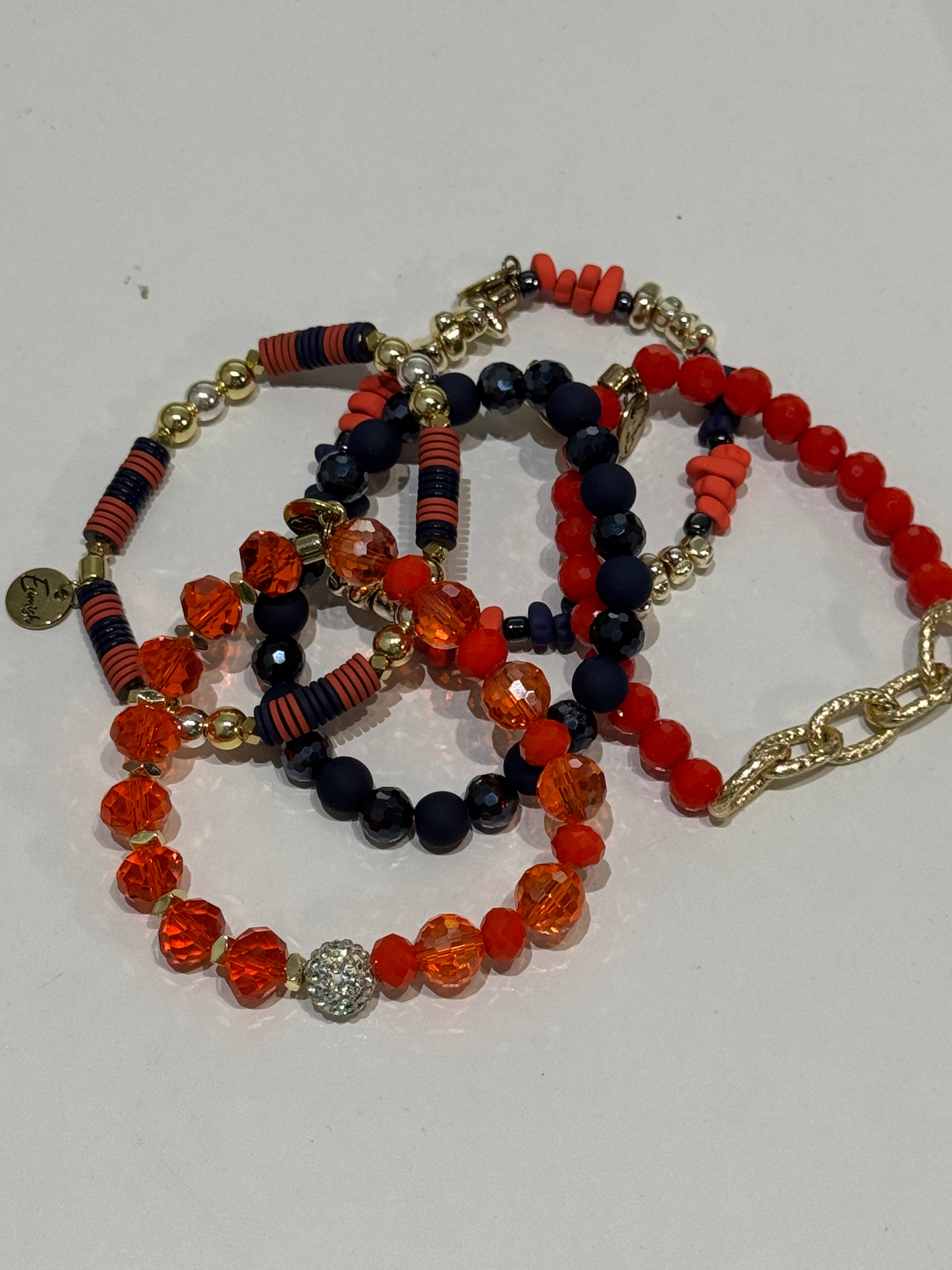5 bracelets, carded. Orange and navy! 7.5"