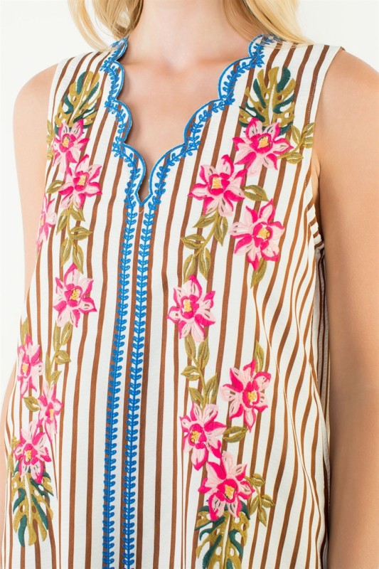Green Stripe Floral Pop Dress