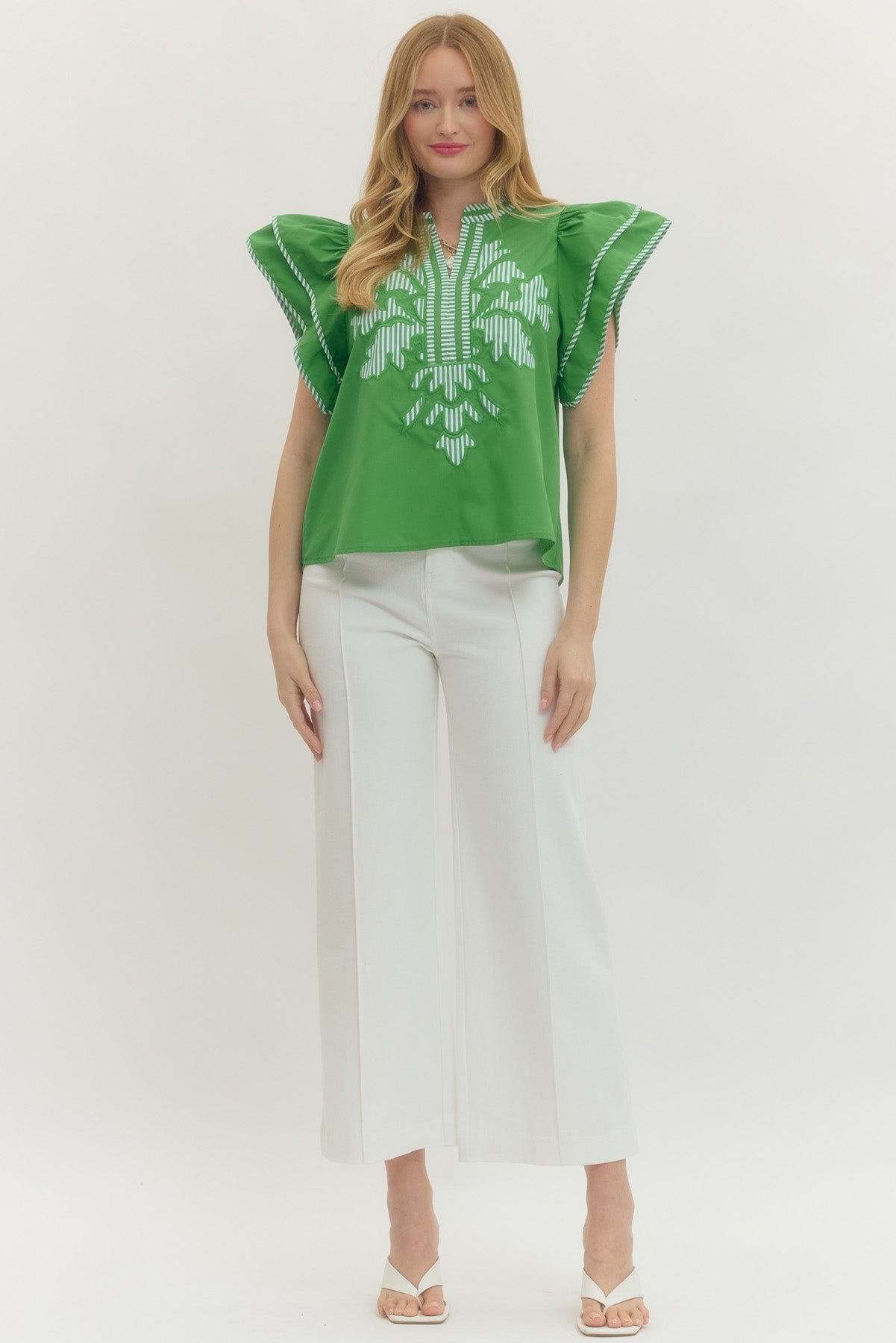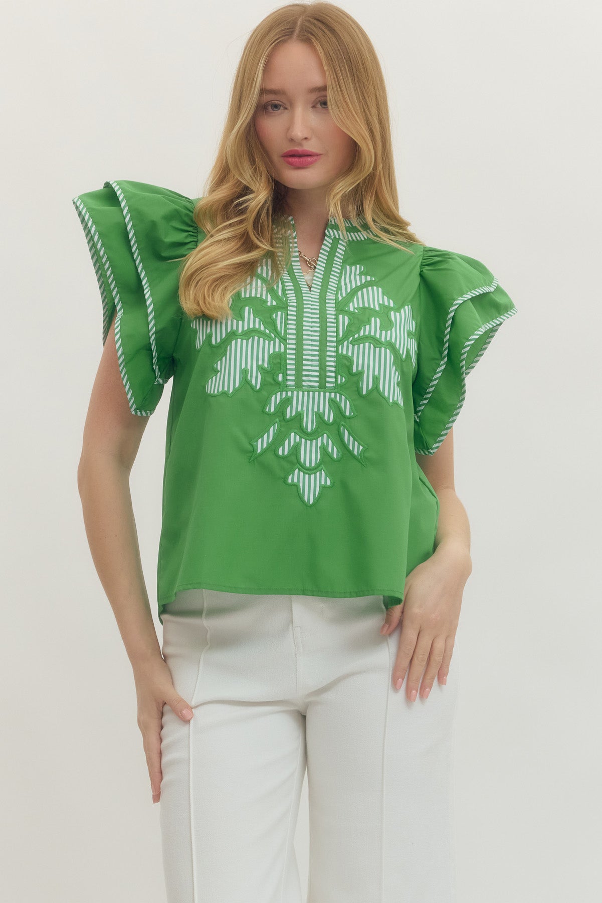 Green Embroidered Feather Top